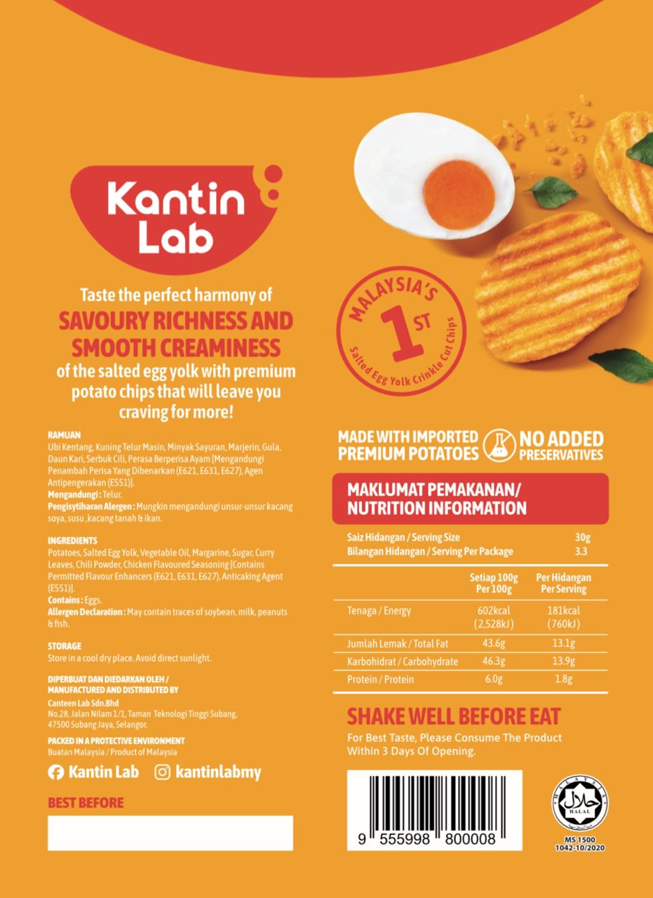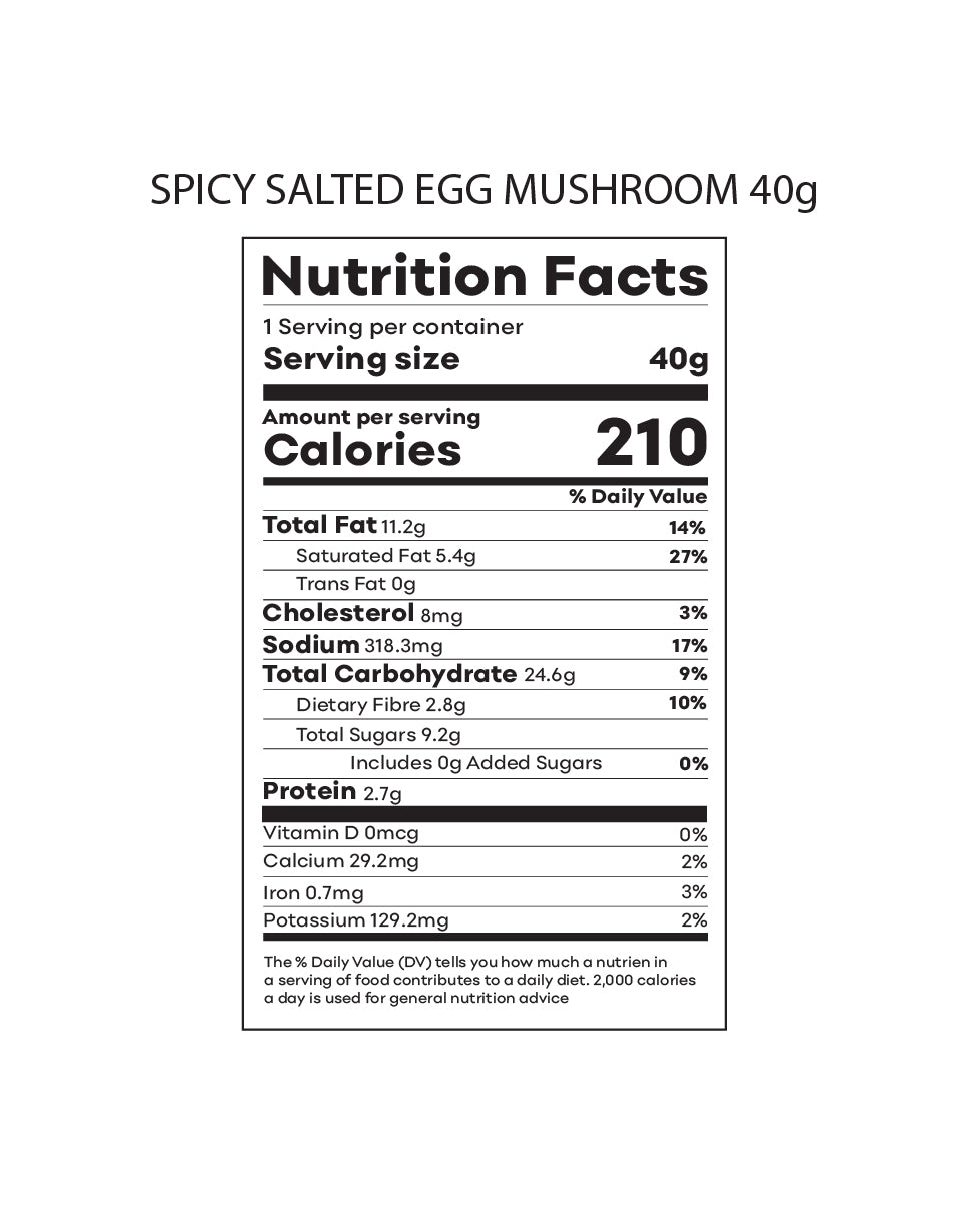 Ingredients: Spring Roll Pastry (47.5%), Salted Egg Yolk (30.5%), Butter, Sugar, Curry Leaf